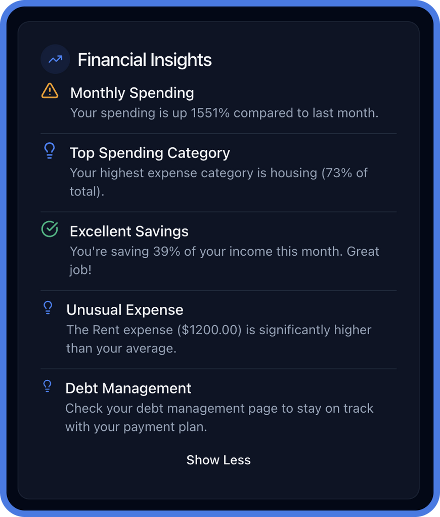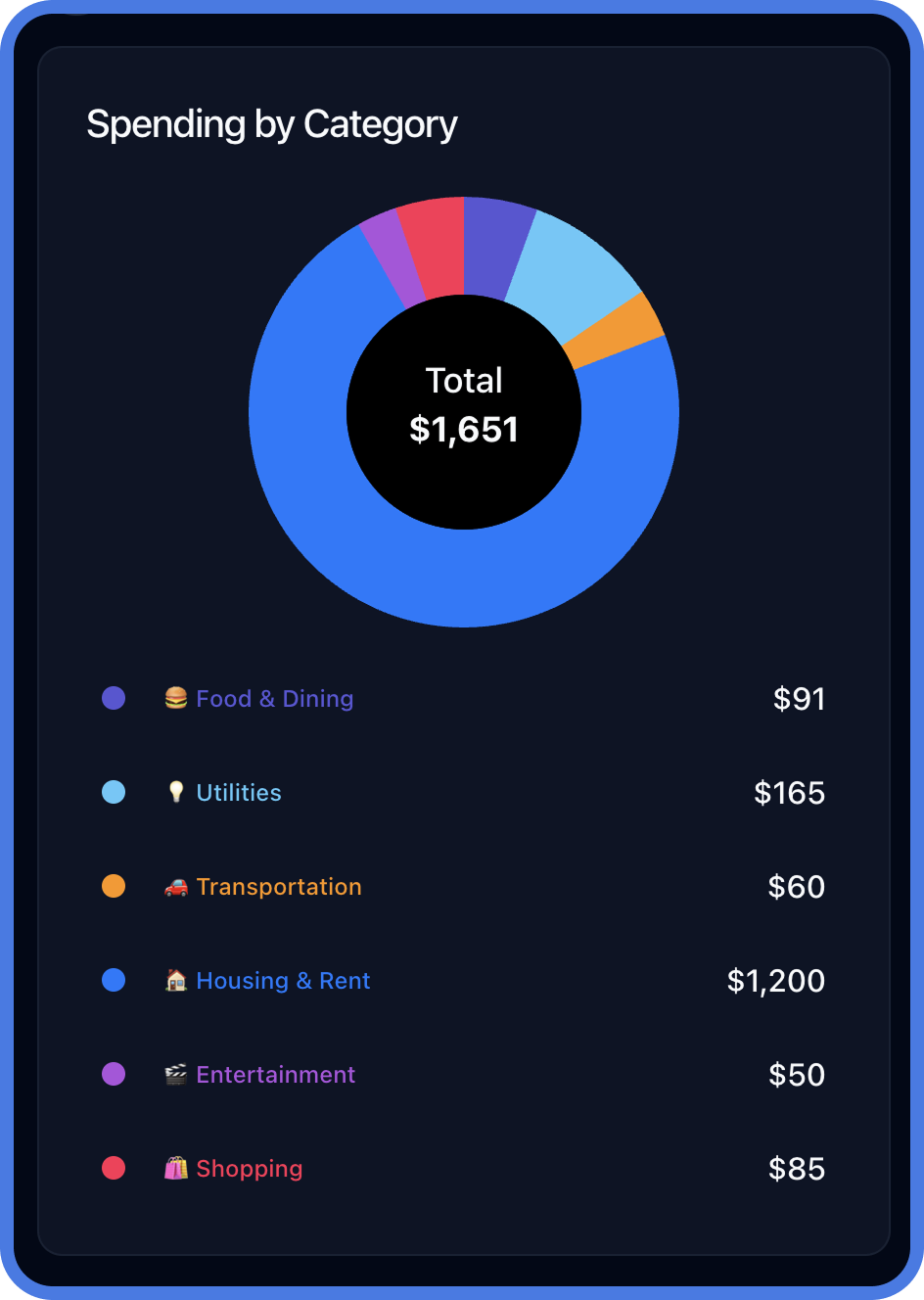 No walls of data. Just clear, visual insights that help you spend, save, and plan with purpose.